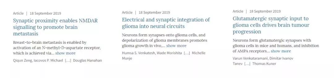 《自然》官网截图 癌细胞劫持神经元形成突触 脑癌中有一种叫做高级神经胶质瘤,罹患高级神经胶质瘤的患者5年生存率仅为5%。它最致命的方面就在于能够扩散污染正常的脑组织,使得肿瘤与脑组织结合在一起,这也是胶质瘤难以治愈的原因。在此之前许多研究都观察到大脑肿瘤的生长与神经元活性异常有关。但是大脑肿瘤具体的生长机制还不清楚,何治疗更是无从谈起。 斯坦福大学医学院的科学家们首次证明:严重的脑癌会整合到大脑神经网络中。新的研究揭示肿瘤细胞会形成突触,劫持健康神经细胞发出的电信号以驱动自身生长。实验表明,用现有的抗癫痫药打断这些信号会大大降低小鼠体内人类肿瘤的癌症生长,这为治疗神经胶质瘤的提供了**个证据。